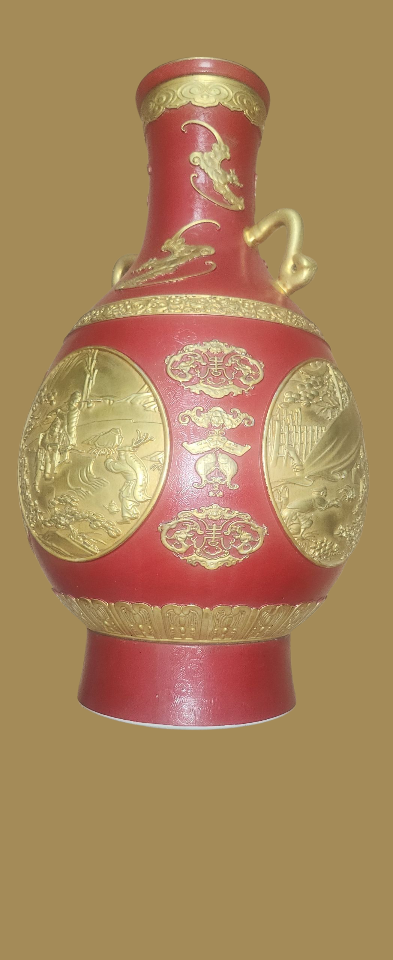 도자기 건륭 연간 분채 금채 부조 장식병